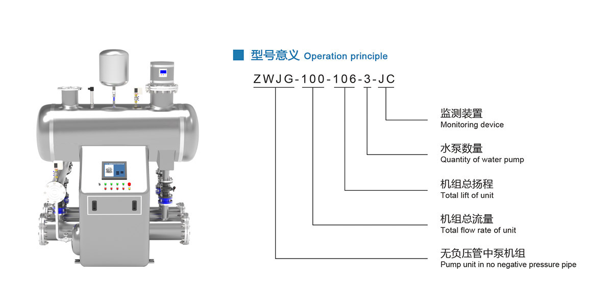 1、无负压静音管中泵变频供水设备,采用大容量补偿稳压罐,并配备双高压储能罐,在市政供水波动时不产生负压,自动补偿叠压供水,不产生汽蚀,满足用户的用水需求;