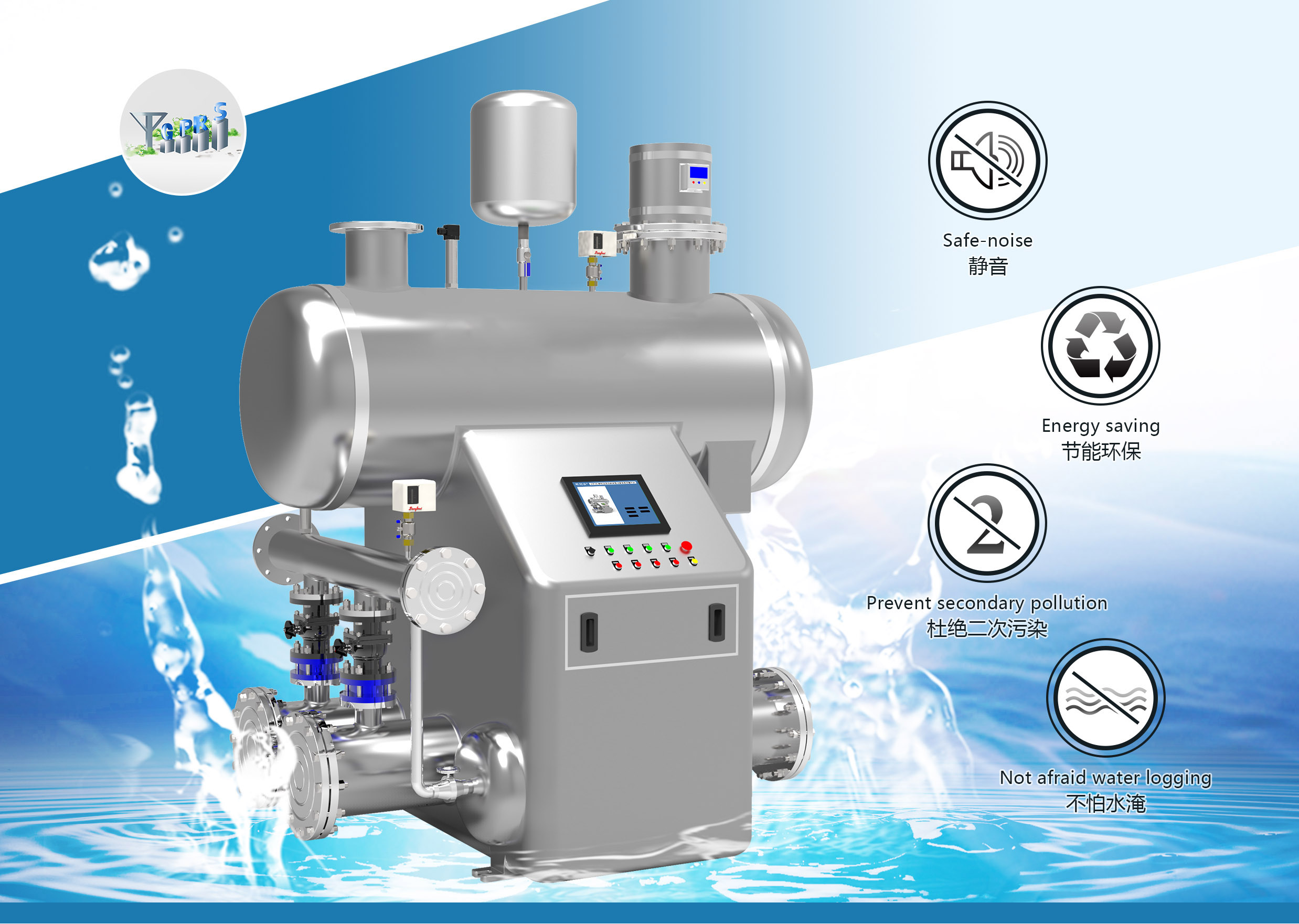 2、该设备具有先进的防振和消音功能,采用超静音大扬程管中泵,不管放置在任何环境,都能稳定安静的运行,减少噪音污染;