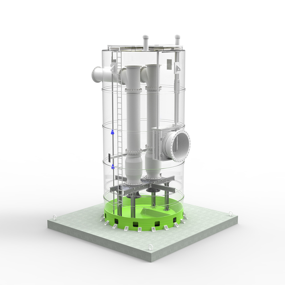 拥有设计多井筒并联和可调节堰设计的技术,确保泵站并联运行情况下在任何流量都能平稳运行。