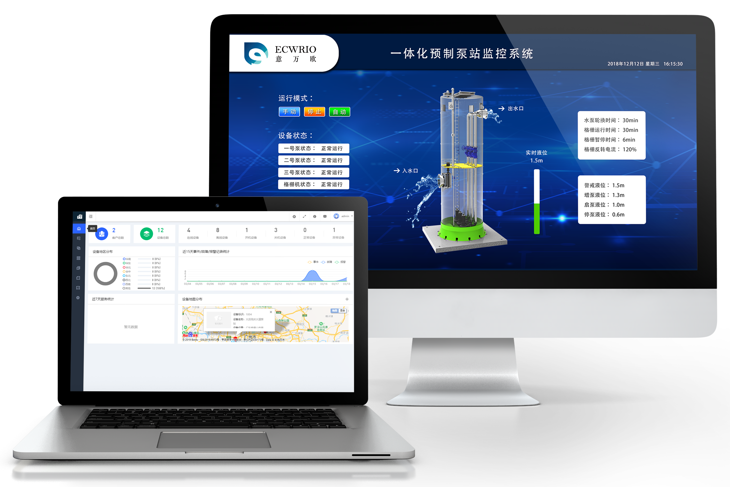 意万欧智慧水务顺应市场需求,为预制泵站提供专业的物联网解决方案。采用物联网、大数据、云计算等技术,打造符合客户行业特征和实际需求的物联网解决方案和产品。采集泵站系统的设备运营、故障、运行等数据,实现设备、客户、厂家的互联互通,实现全覆盖、高智能、实时响应的的水站管理、运营管理、能耗评估、环境效益评估等功能。